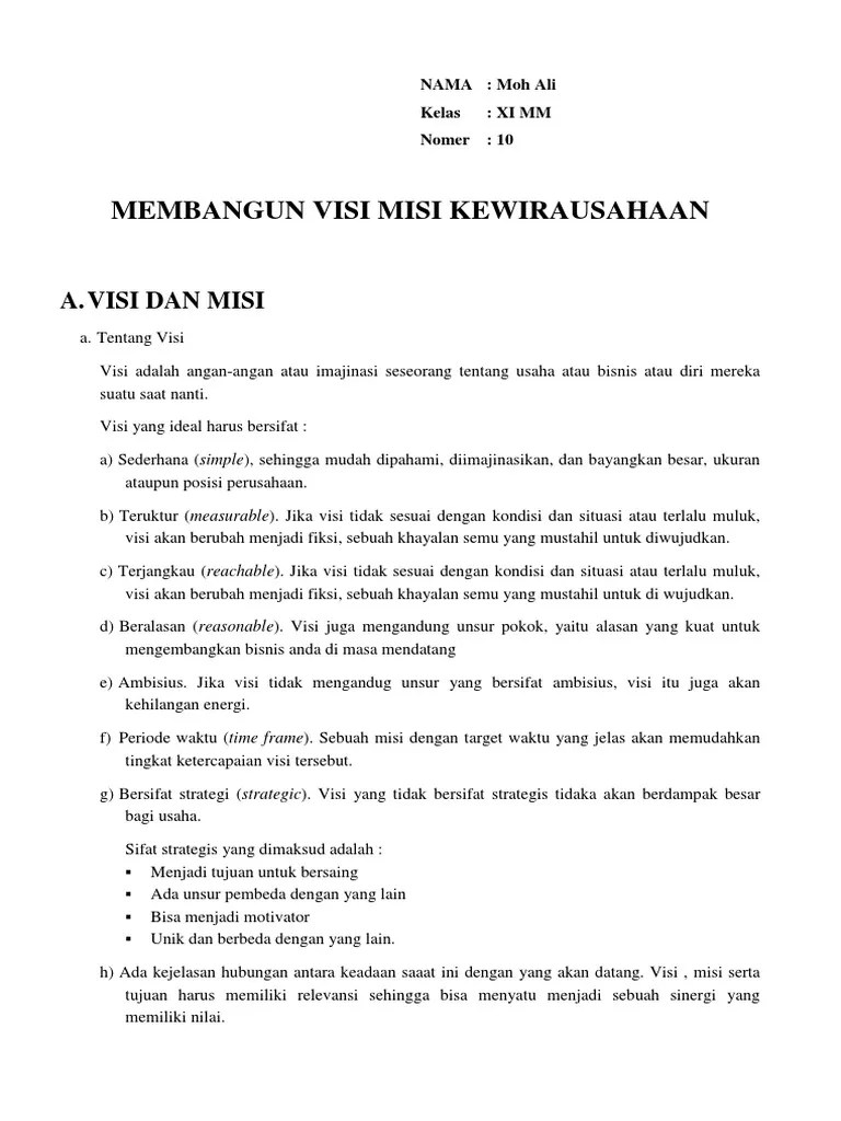Contoh visi misi usaha mikro · 1.